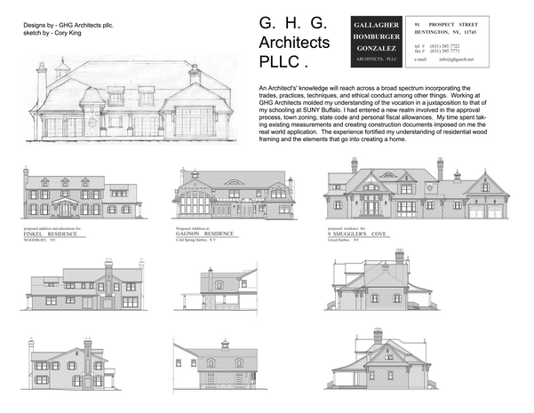 GHG Architects is where I gained my first real world exposure to the practice and insight into how a small firm operates. I enjoyed the people and accrued an indispensable knowledge about the discipline. Working for this well established residential firm had fortified my understanding of residential wood framing and the elements that go into creating a home. When the time came I would decide to go in a different direction but would always carry this knowledge with me.